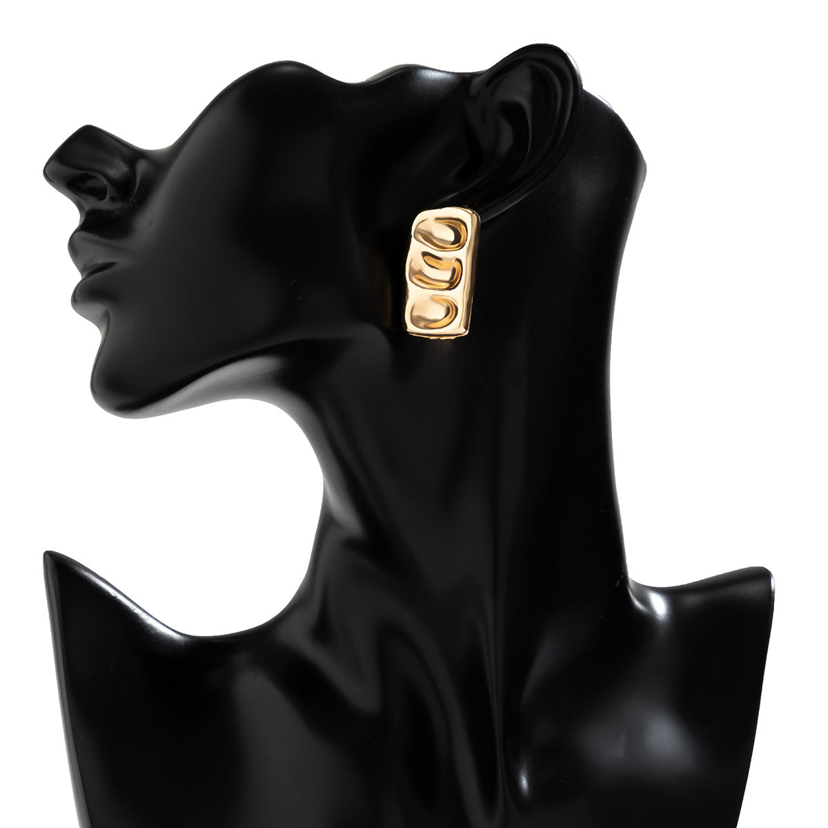 Exaggerated French geometric fashion round metal earrings with simple irregular texture earrings, niche
