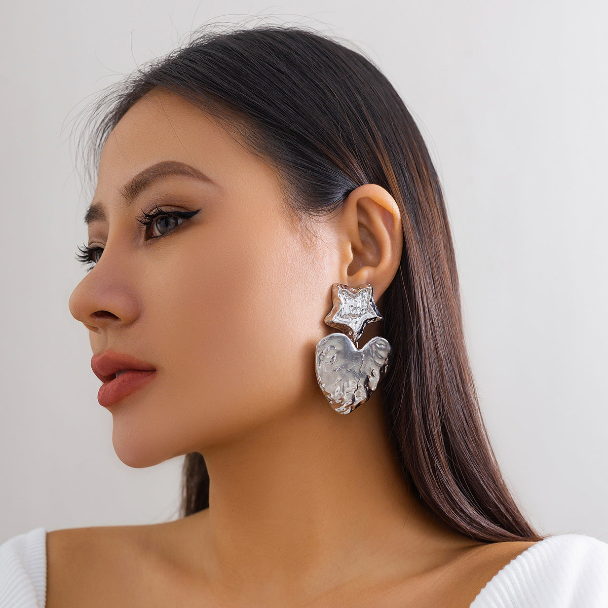 Metal heart-shape niche earrings retro versatile cool style striped earrings for women