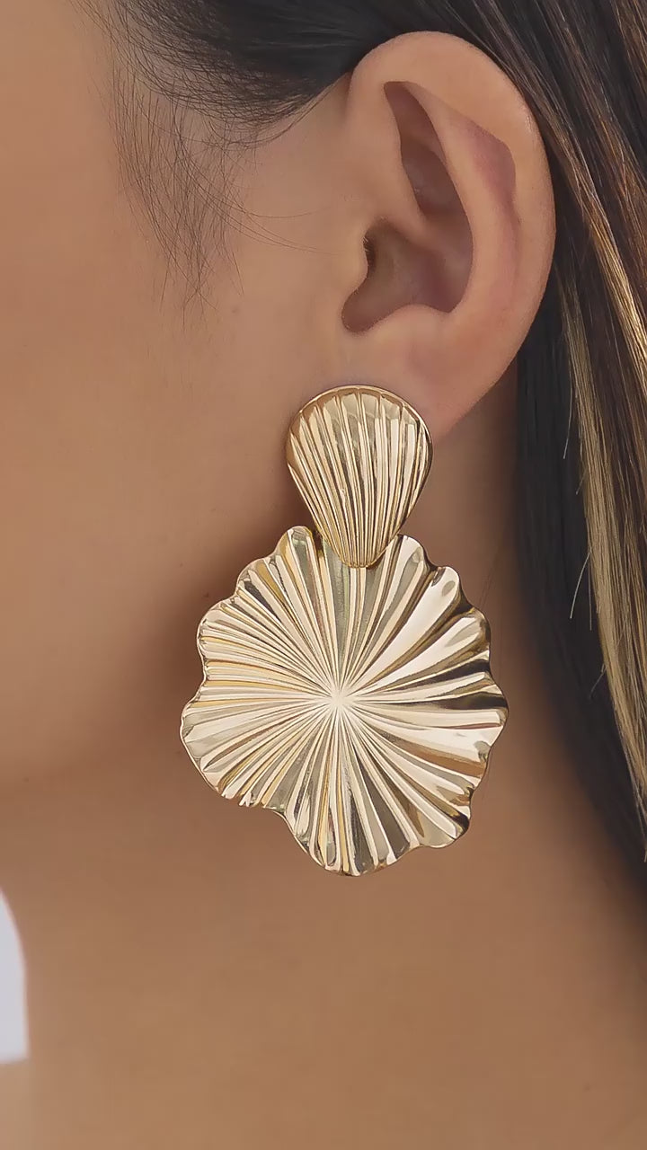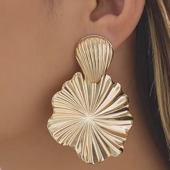 Personalized liquid fluid metal lotus leaf earrings, niche and cool style, pleated shell earrings