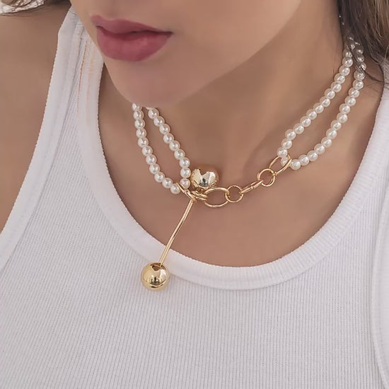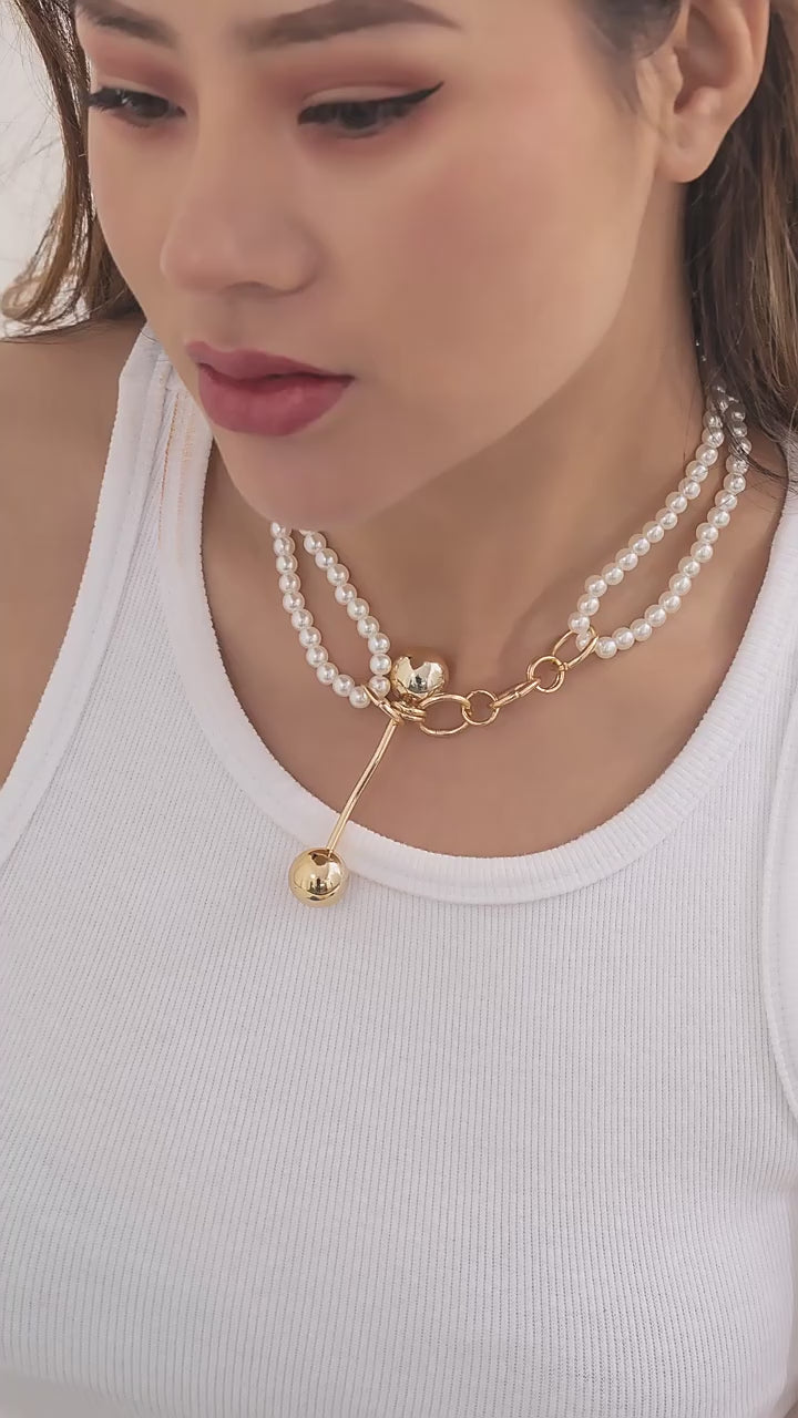 Retro pearl patchwork simple necklace with female creative temperament, round bead chain layered necklace decoration