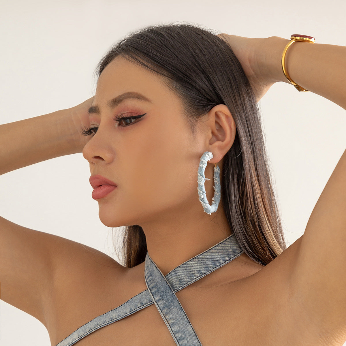 Small and niche design, sweet and cool geometric ring earrings, French temperament, simple denim earrings